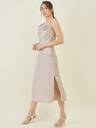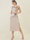 Aayu women cowl neck A-line Dress, in Satin fabric,below knee length, sleeveless noodlestarp zip clouser side slit cut solid dress.