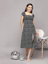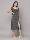 AAYU Women A-line Black, White Midi/Calf Length Dress