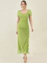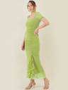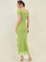 Aayu women maxi dress, georgette fabric, sweetheart neck, Solid print, full length short sleeves, zip closure and polister lining dress..