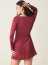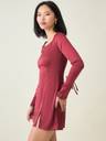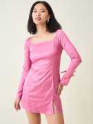 Aayu women squre neck A-line short solid Dress, in satin fabric, no Lining, above knee length, full sleeve length & closer zip side slit cut dress....