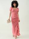 Aayu women maxi dress, georgette fabric, sweetheart neck, Solid print, full length short sleeves, zip closure and polister lining dress..