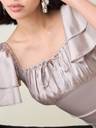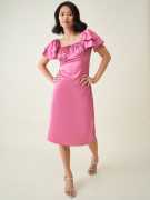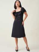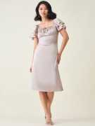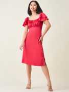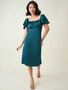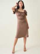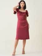 Aayu women squre neck A-line solid Dress, in satin fabric, no Lining, knee length, short sleeve length & closer zip side slit cut yoke dress....