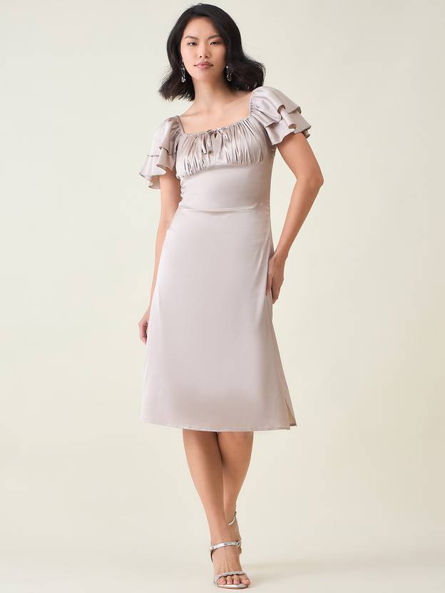 This Solid Dress is designed by AAYU CREATION in beautiful pattern for casual , wedding for party occasion. The elegant short sleeve Dress is made of satin fabric which is considered to be one of the most soft and comfortable fabric. You can wear this for special occasions as well and look amazing. There might be slight variation in the actual color of the product due to different screen resolutions.
