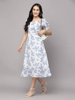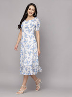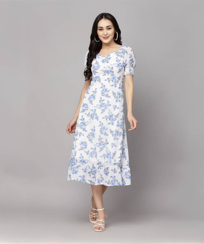AAYU Women A-line White, Light Blue, Grey Midi/Calf Length Dress