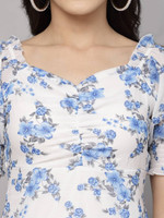 Thanks to its beautiful floral print, this women’s dress brings a soft, feminine touch to its overall appearance. The smocking detail along the sleeve hems adds subtle texture, creating a gentle gathered effect that complements the flow of the fabric. In addition, the ruffles along the neckline lend a delicate, graceful look, enhancing the visual charm of this dress. Moreover, the combination of these elements provides a sense of depth and detail without appearing overly styled.