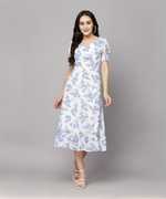 AAYU Women A-line White, Pink Midi/Calf Length Dress