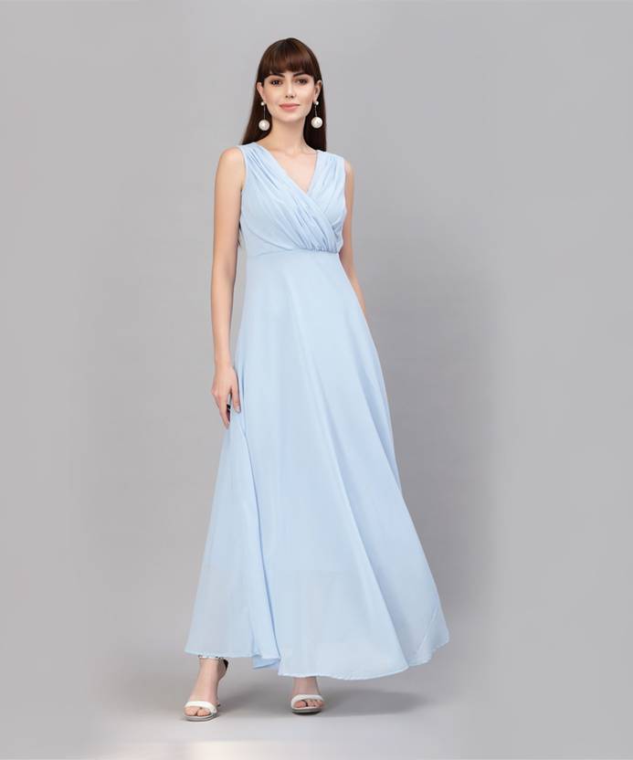 AAYU Women Fit and Flare Blue Maxi/Full Length Dress