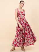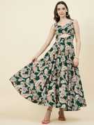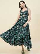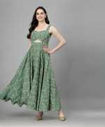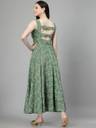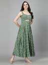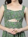 Aayu Women Green Color pasleyprint Bidwork Waist Cut-Out Fit & Flare Dress, in Crepe fabric, Sleeveless, sweetheart neck, full maxi Length , Fit & Flare, Closure zip, Flared Hemline and features Cut-Out Detail.