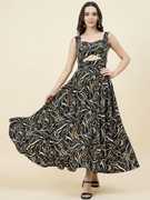 This printed waist cut-out Dress is designed by AAYU CREATION in beautiful pattern for casual , wedding for party occasion. The elegant sleeveless Dress is made of Crepe fabric which is considered to be one of the most soft and comfortable fabric. You can wear this for special occasions as well and look amazing. There might be slight variation in the actual color of the product due to different screen resolutions.