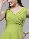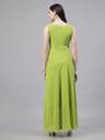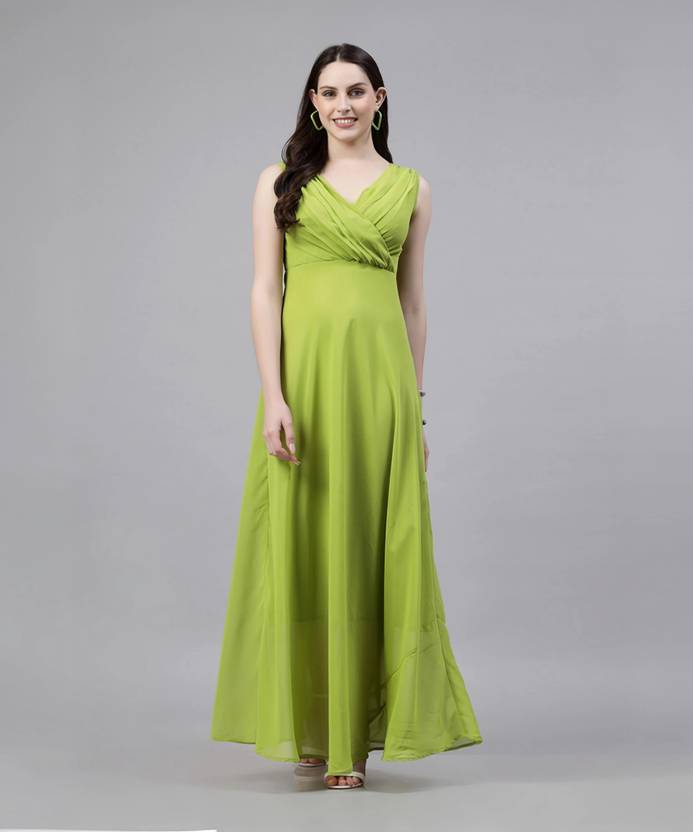 Aayu women fit & flare Georgette fabric, V neck, solid print, maxi length & sleeveless casual and party wear pleated neack dress.