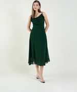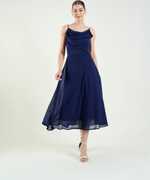 Aayu women white & blue cowl neck fit & flare Dress, in georgette fabric, Polyester Lining, calf length, sleeveless floral print noodlestarp dress....
