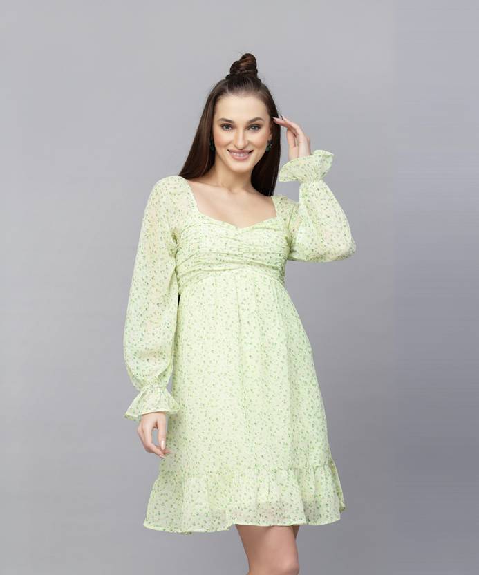 AAYU Women Fit and Flare Light Green Knee Length Dress