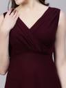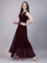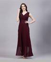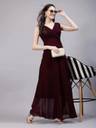 Aayu women fit & flare Georgette fabric, V neck, solid print, maxi length & sleeveless casual and party wear pleated neack dress.