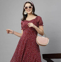 Boasting a combination of georgette fabric and a polyester lining, this dress provides a lightweight feel along with a flowing drape. The outer layer, made from georgette, lends a sheer and airy texture, while the polyester lining ensures coverage and comfort against the skin. Moreover, this pairing allows the fabric to move easily with the body and stay in place during wear. Additionally, the materials support easy maintenance and hold their structure through repeated washes.