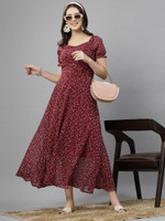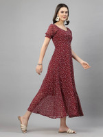 AAYU Women Fit and Flare Maroon Maxi/Full Length Dress