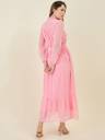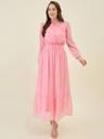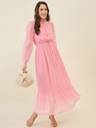 Aayu women Fit & Flare mandarin neck solid doby Dress, in georgette fabric, Polyester Lining, maxi length, full puff sleeve length & closer zip smoking dress....