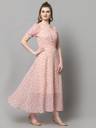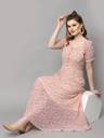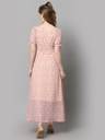 AAYU Women Fit and Flare Pink, White Maxi/Full Length Dress