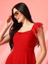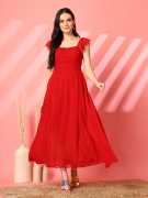 Aayu women Squre neck solid Dress, in georgette fabric, Polyester Lining, maxi length, Fit And Flare, sleaveless length & closer zip stylish backless dress....