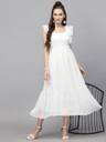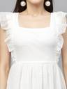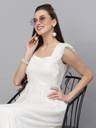AAYU Women Fit and Flare White Midi/Calf Length Dress