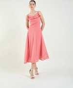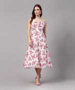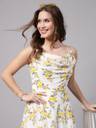 Aayu women white & yellow cowl neck fit & flare Dress, in georgette fabric, Polyester Lining, calf length, sleeveless floral print noodlestarp dress....