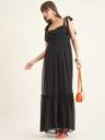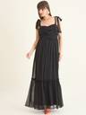 Aayu women fit & flare chiffon fabric, Sweetheart neck, Solid print, Maxi length & sleeveless casual and party wear layered dress.