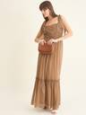 AAYU Women Layered Brown Maxi/Full Length Dress