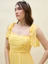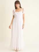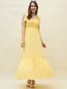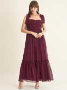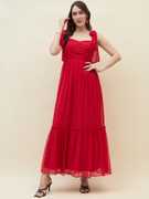 Aayu women fit & flare chiffon fabric, Sweetheart neck, Solid print, Maxi length & sleeveless casual and party wear layered dress.
