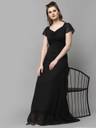 Aayu women maxi Georgette fabric, sweetheart neck, solid print, maxi length & short sleeves casual and party wear dresses.