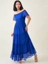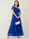 Aayu women off shoulder neck solid maxi Dress, in chiffon fabric, polyester Lining, maxi length, short sleeve length ruffle details & closer zip smoking dress....