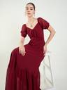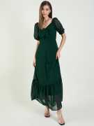 Aayu women sweetheart neck solid print Dress, in georgette fabric, Polyester Lining, maxi length, half puff sleeve length Tie details & closer zip maxi dress....