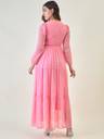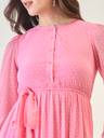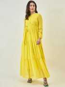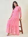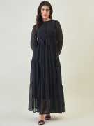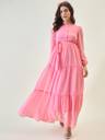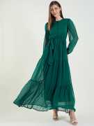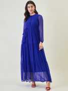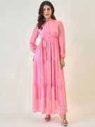 Aayu women Fit & Flare round neck solid tiered Dress, in georgette fabric, Polyester Lining, maxi length, full puff sleeve length bow details & closer zip stylish dress....
