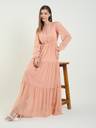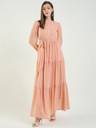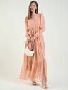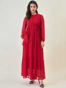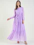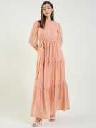Aayu women Fit & Flare round neck solid tiered Dress, in georgette fabric, Polyester Lining, maxi length, full puff sleeve length bow details & closer zip stylish dress....