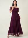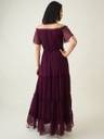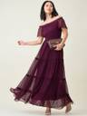 Aayu women off shoulder neck solid maxi Dress, in chiffon fabric, polyester Lining, maxi length, short sleeve length ruffle details & closer zip smoking dress....
