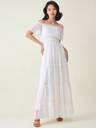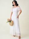 Aayu women off shoulder neck solid maxi Dress, in chiffon fabric, polyester Lining, maxi length, short sleeve length ruffle details & closer zip smoking dress....