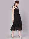 AAYU Women Ruffled Black Midi/Calf Length Dress