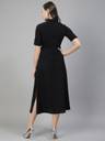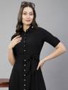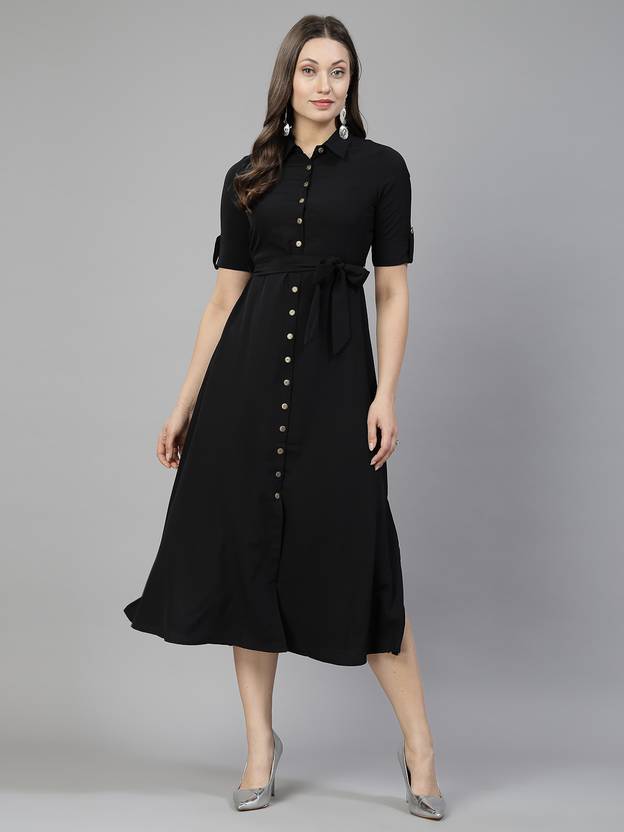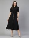 Aayu women A-Line shirt collor Dress, in crepe fabric, maxi length, half roll-up sleeve & clouser buttons solid dress....