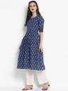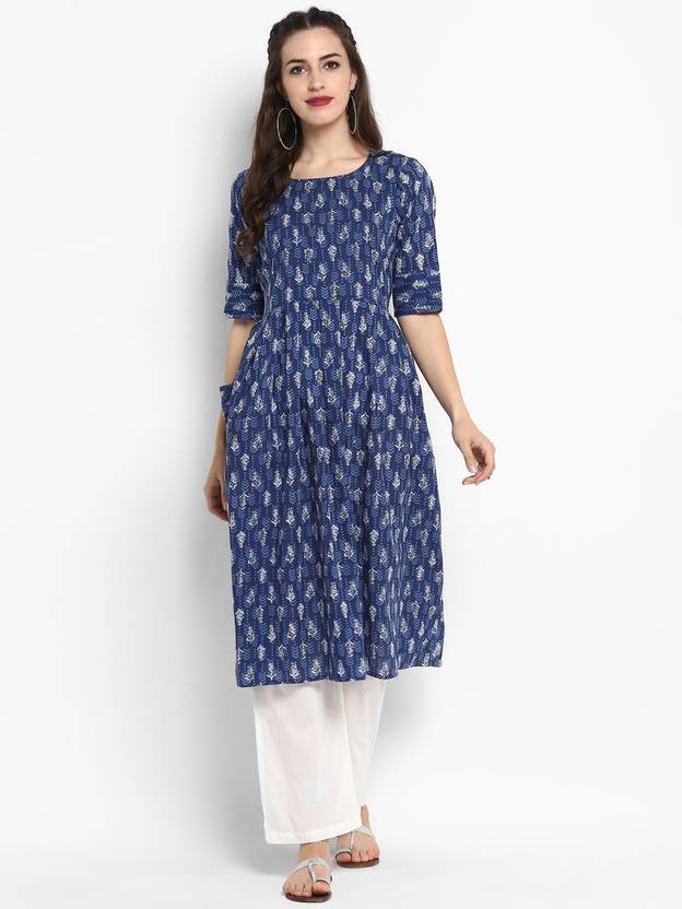 Aayusika Beautiful Ethnic Wear Cotton Designer Indigo Printed & Trim Work Long Anarkali & Palazzo Set