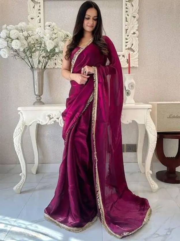 Embroidered, Solid/Plain Bollywood Art Silk Saree (Purple)