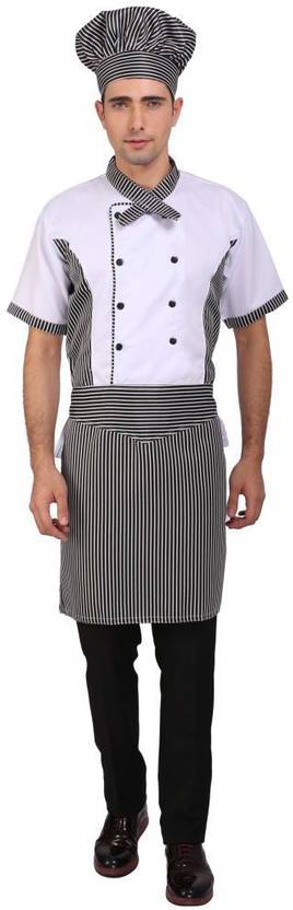 Your culinary creations will be delicious when you wear this unisex chef coat, made of preshrunk fabric so it retains its shape & stain-resistant technology helps wash away sauce spots, spatters and other wayward ingredients,workwear collection is designed for the work you do everyday. Stronger seams. More durable fabrics. Pockets in just the right places. With so many features that help you get the job done, our chef jacket definitely has what it needs.Chef Coat Attach Apron with Cap Fabric Material : 35% Polyester, 65% Cotton fine line premium fabric, Made In India