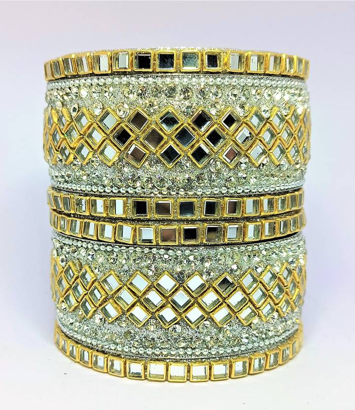 Minimal Pieces, Silver, Kundan, White Jewellery, Partywear, American Diamond Jewellery, Traditional Bangle Set, Crystals