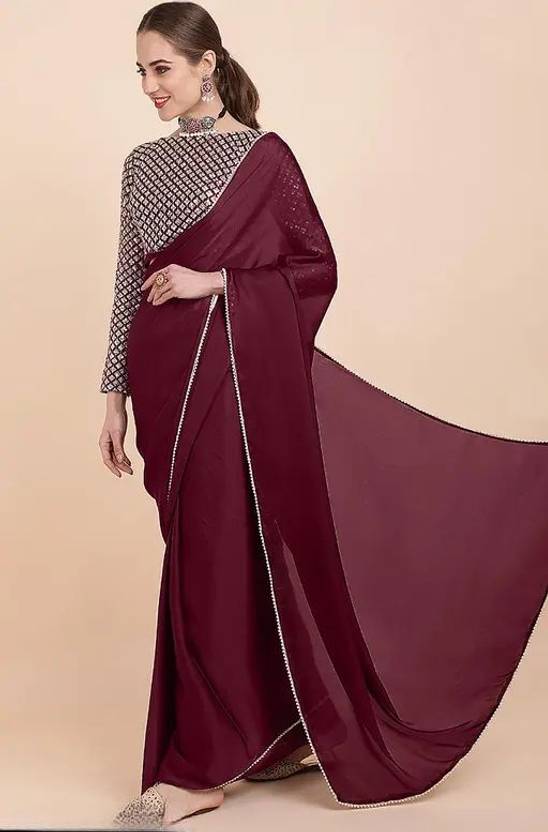 Solid/Plain Bollywood Art Silk Saree (Maroon)