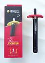 The lighter have a sleek and ergonomic design. It features a main body that is black, made of a Stainless Steel. A distinctive yellow, wide, and circular head or top piece, providing a contrasting color and an ergonomic grip or protection for the ignition mechanism. The actual igniter tip, which would produce the spark, is a thin, metallic rod extending from the top of the lighter.