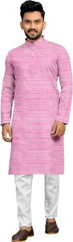 Abdullah Faishon Men Solid A-line Kurta (Pink)