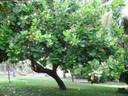 The cashew tree is a tropical evergreen tree that produces the cashew seed and the cashew apple accessory fruit. The tree can grow as tall as 14 metres, but the dwarf cultivars, growing up to 6 m, prove more profitable, with earlier maturity and greater yields