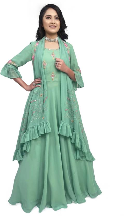 Dezzy Styles has own design. These Gown are decent look and included shrug. You can wear this Shrug from three angles will give you such a good look. When you wear this Gown in festival, party and wedding you will look elegant and unique you will also wear matching Earning, necklace and shoes for elegant look in party, festival and wedding.