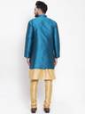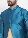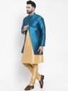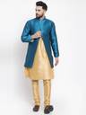 ABH Lifestyle as a brand brings you quality and affordability.we take pride in our commitment to maintain quality standards in each piece manufactured by us. A true epitome of class, this Gold kurta Pyjama and designer Side Buttoned stylish Jacket will surely grace your presece on special occasions. Made from premium banarsi silk fabric, this set will surely make you the cynosure of all eyes. Team this outfit with a pair of mojris to give a classy touch to your ethnic look.