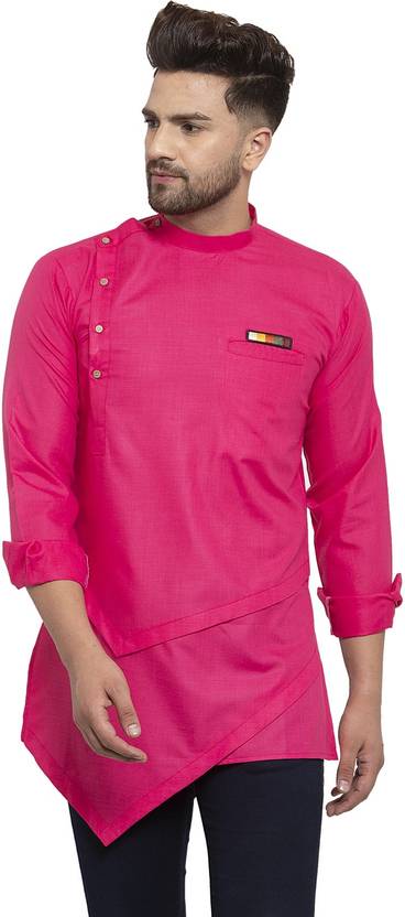 ABBER FASHION Men Solid Asymmetric Kurta (Pink)