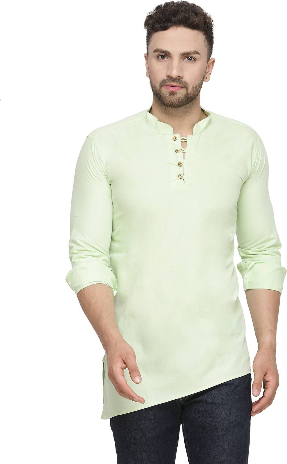 ABH LIFESTYLE - This Casual Kurta has a Standard collar , long sleeves with button cuffs , Half buttoned placket on the front, yoke on the back, curved hem. Pair this along with a good pair of denim or chinos and loafers / Espadrilles for a Sharp and Dapper look .This material comes with 100 % Premium Cotton.Cotton rich fabric for crisp Casual look.Wash care : Machine Wash/Hand Wash.