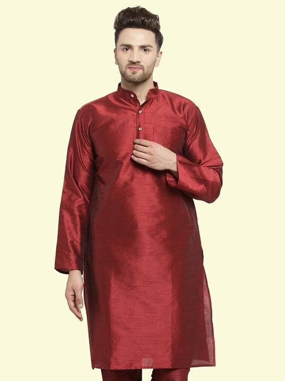 Men Solid Dupion Silk Straight Kurta (Maroon)