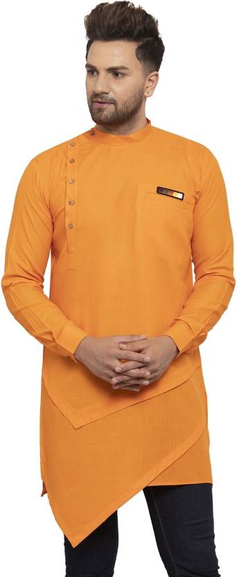 ABH Lifestyle Men Solid Trail Cut Kurta (Orange)